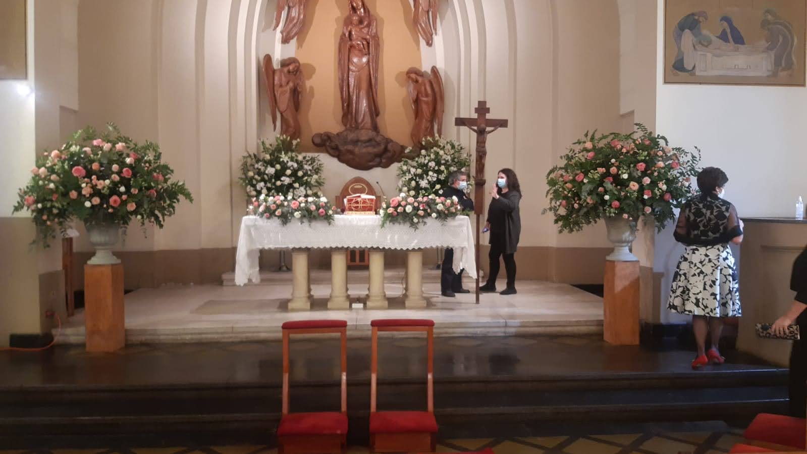 2 arreglos ovalados para la mesa del altar.